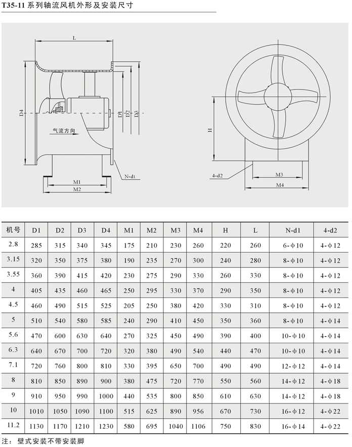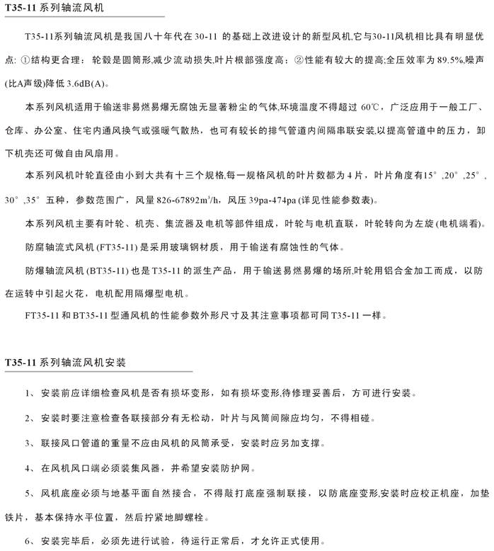 FT35-11和BT35-11型通風機的性能參數(shù)外形尺寸及其注意事項都可同T35-11一樣。